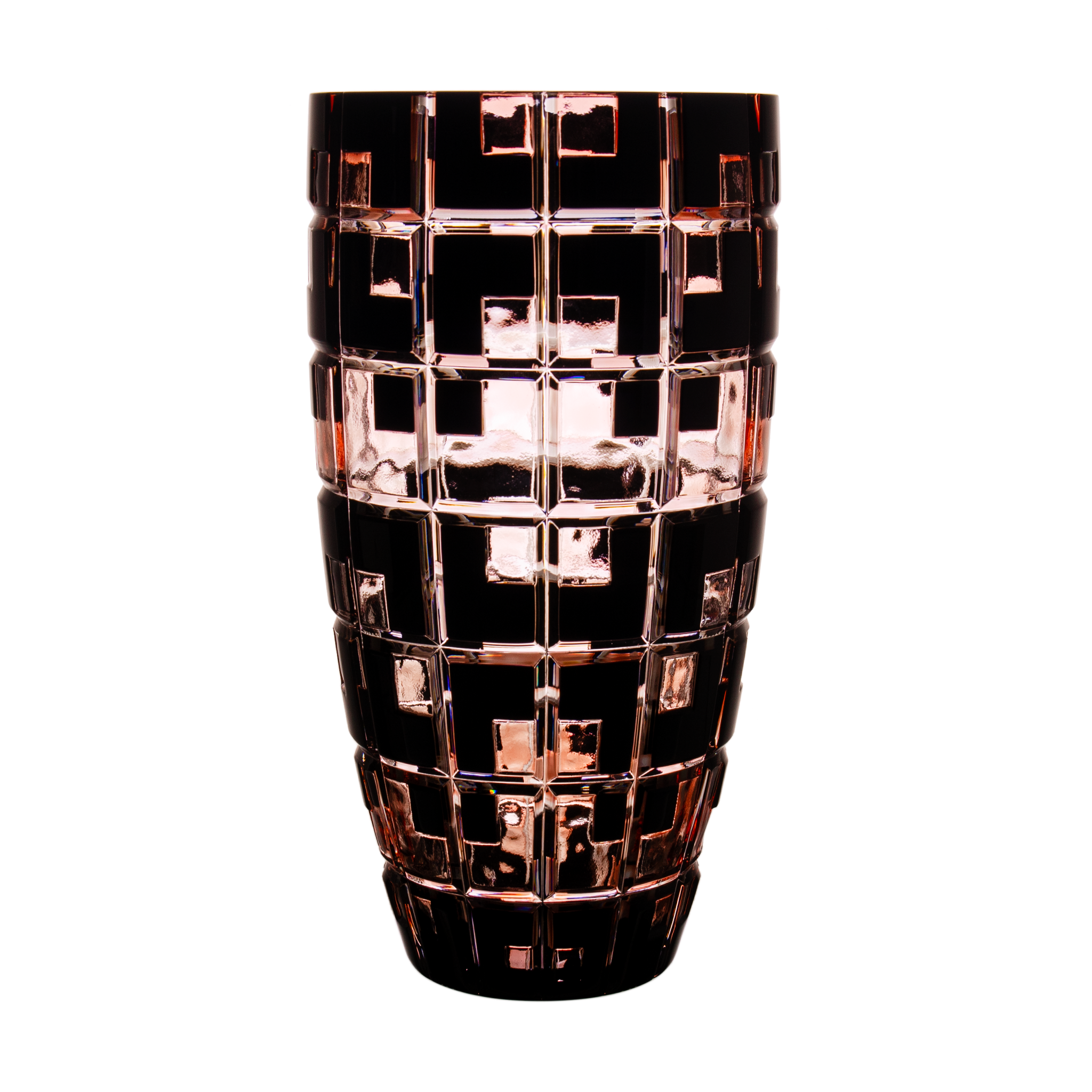 Geometry Double Cased Black & Ruby Red Vase 10.2 in