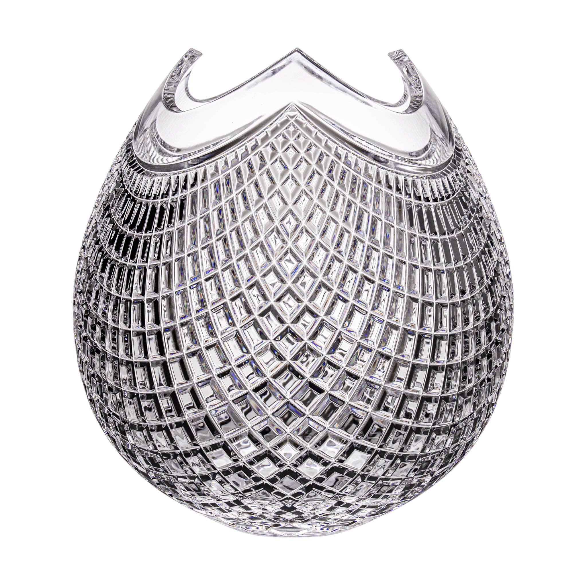 The Hadrian Vase is a masterpiece of crystal craftsmanship, featuring an intricate lattice design with remarkable detail and precision. Its graceful, curved silhouette exudes timeless elegance, making it a captivating centerpiece for any setting.