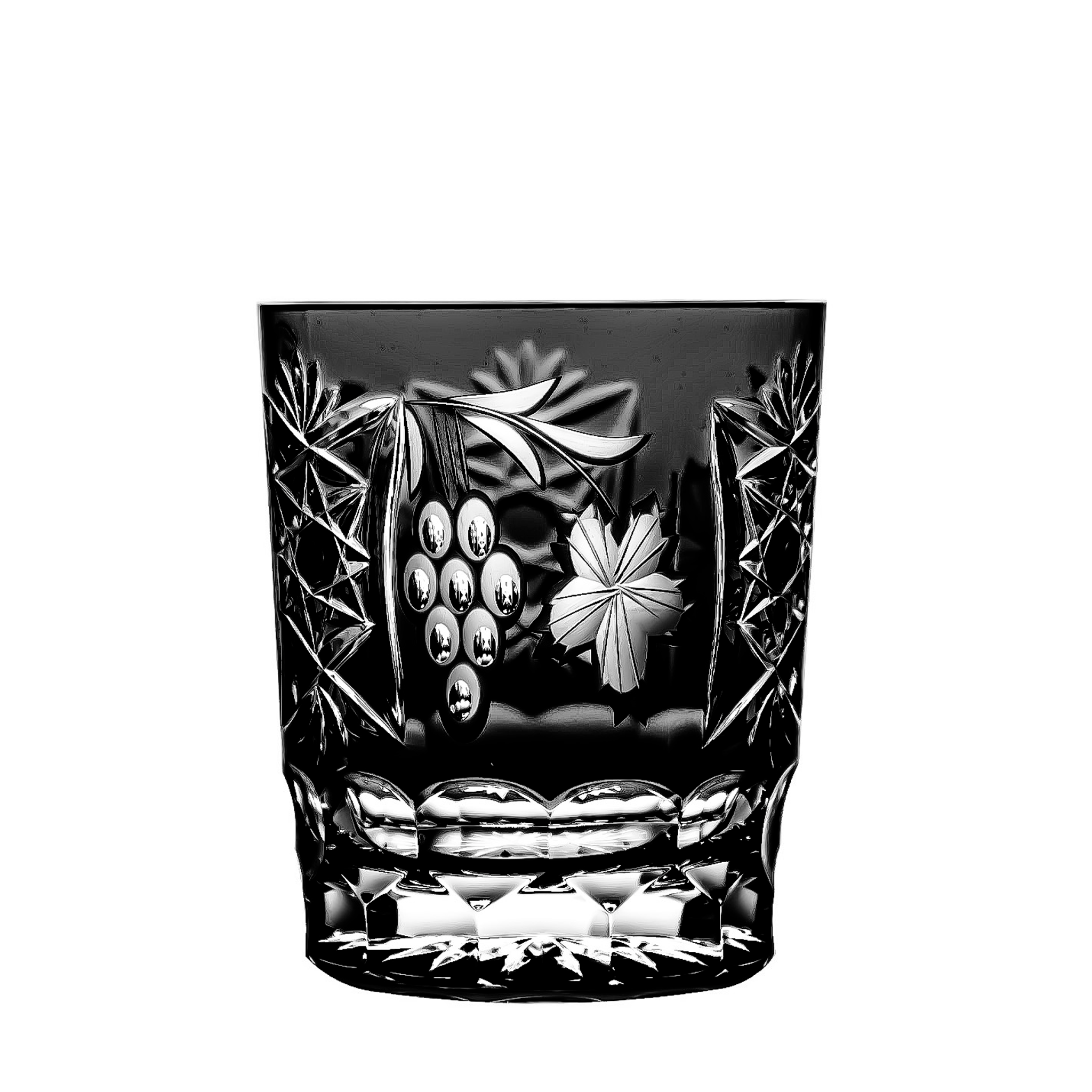 Genuine cased coloured lead crystal glasses with a grape design. It is a hand-polished, mouth-blown unique product.
