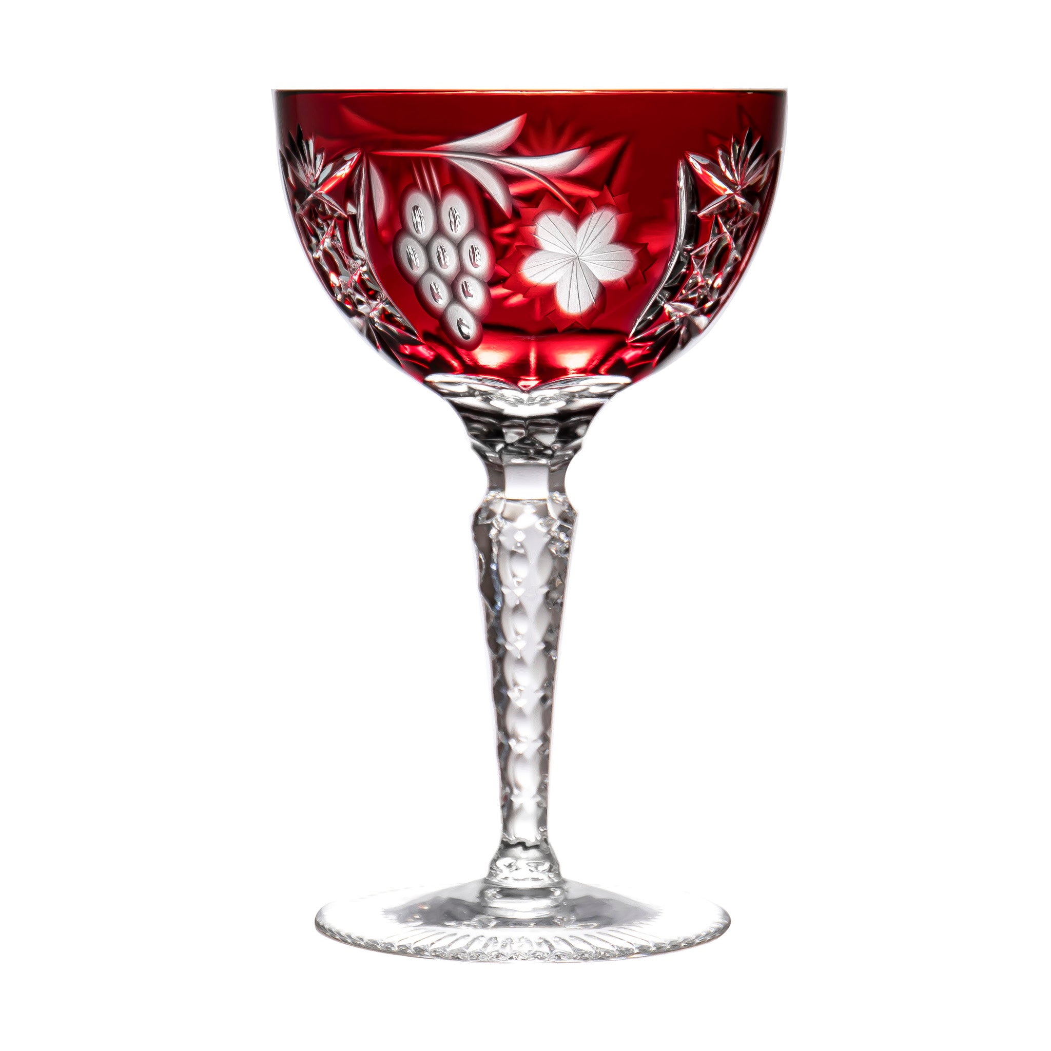 The Marsala Ruby Red Champagne Coupe Crystal glass is an elegant and sophisticated piece of stemware. Its deep, ruby red colour and delicate crystal construction make it the perfect vessel for enjoying your favourite champagne or sparkling wine.