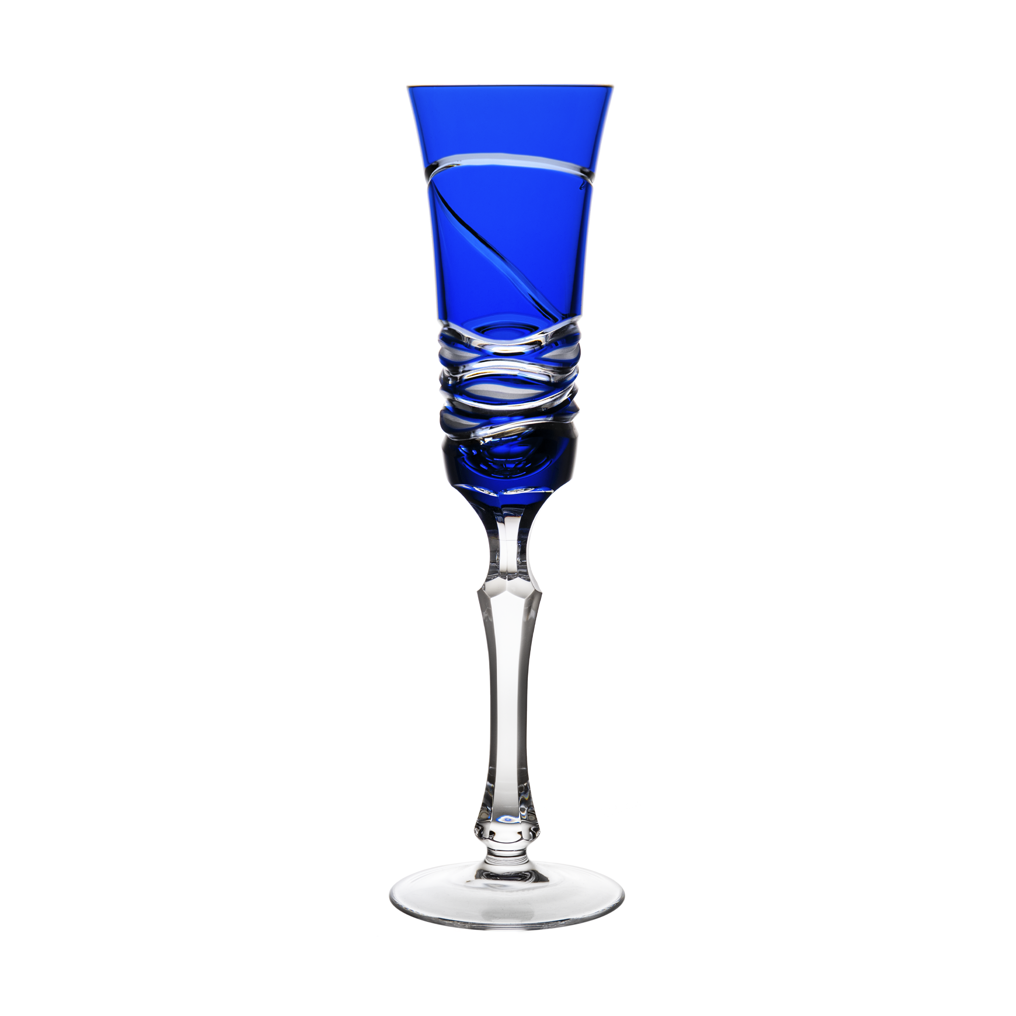 Birks Crystal Silver Ribbon Blue Champagne Flute
