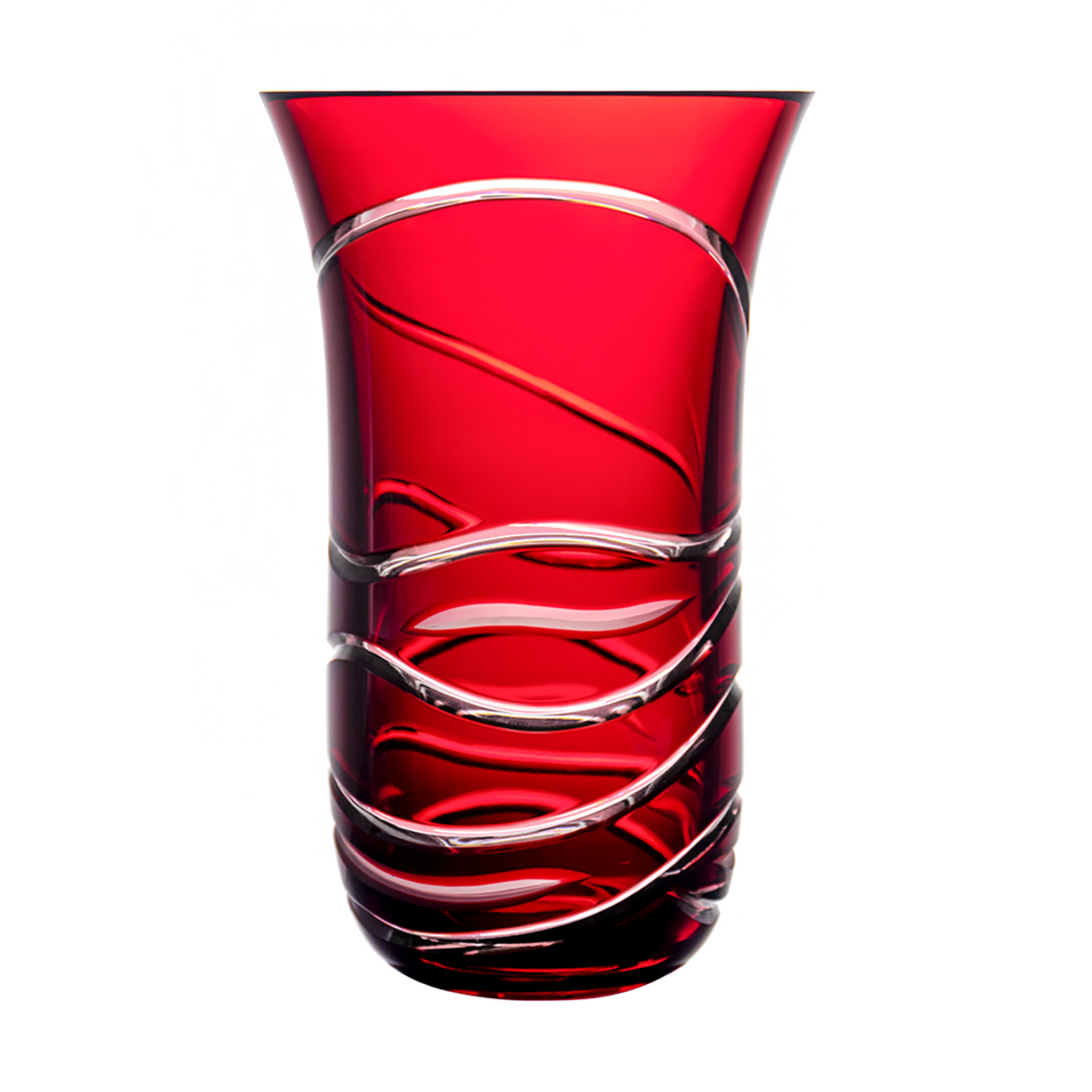 Birks Crystal Silver Ribbon Ruby Red Vase 11.8 in